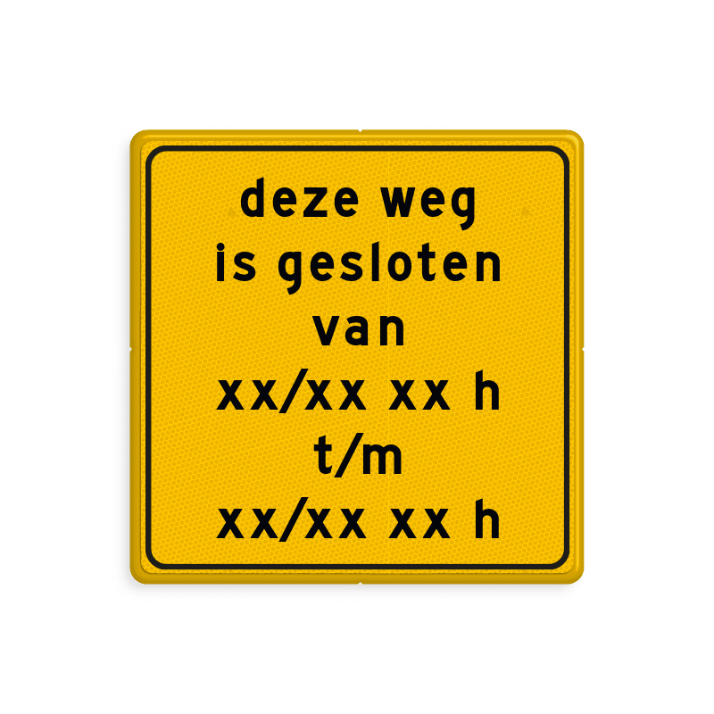 Al onze borden worden - tenzij anders aangegeven - voorzien van reflecterende folie. Deze speciale folie weerkaatst licht en is dankzij een zeer hoog helderheidsniveau altijd goed zichtbaar. Hierdoor zijn (verkeers)borden ook in het donker goed te lezen. Dankzij deze folie komt je boodschap in alle omstandigheden goed over.